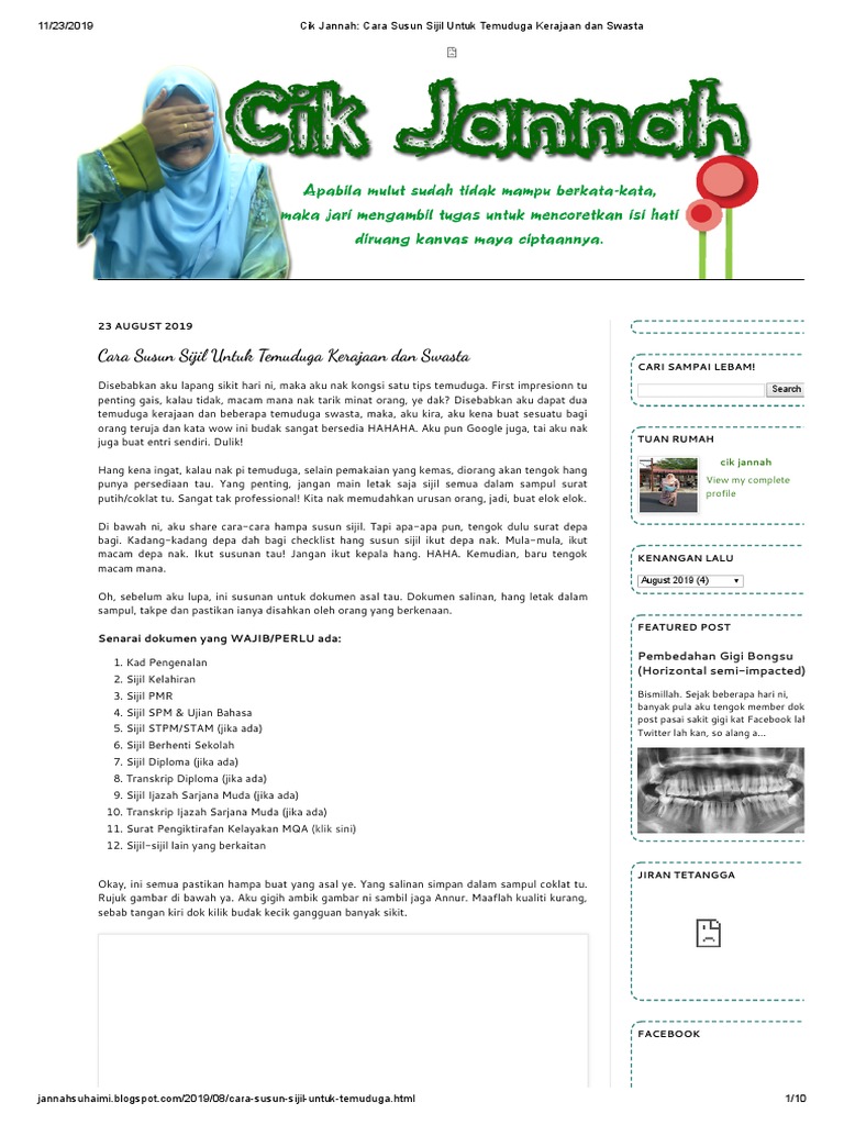 Kad pengenalan dan sijil lahir asal (bukan salinan). Jangan sesekali anda memandang remeh terhadap temuduga yang bakal anda hadapi. So utk first entry persediaan temuduga spa ni, saya decide nak ini bukan cara yg terpaling betul tepat pasti lulus interview. Berikut adalah tapisan temuduga spa di kerjakosong.co. First impresionn tu penting gais, kalau tidak, macam mana nak tarik minat orang, ye dak? Ini tips & cara susunan fail dengan betul. Cara susun sijil ke temuduga. Cara terbaik ialah seperti berikut maksudnya, susun dari sijil berkenaan kerja, selepas itu yang berkaitan dengan universiti seterusnya, letakkan sijil dari zaman sekolah menengah Pukul 7.15 aku sampai depan bilik temuduga dan ada beberapa orang yang dah sampai. Panduan hadapi temuduga kerja di sektor kerajaan/awam. Aku nak kongsi pengalaman aku menghadiri temuduga spa. X tahu nk prepare apa? Lulusan diploma, temuduga jawatan kelulusan spm.