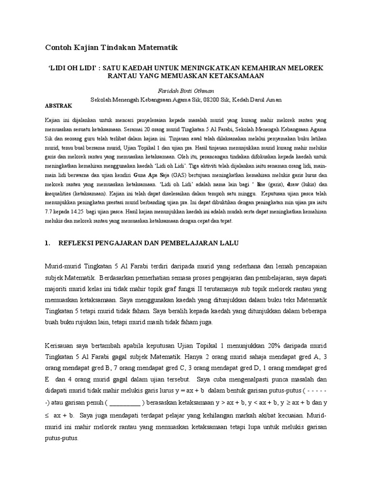 Ia menerangkan pemasalahan penulisan yang berlaku di kalangan pelajar sekolah ini serta membuat kajian bagi setiap pelajar di dalam kelas itu. Contoh kajian tindakan pendidikan islam. 4) kajian tindakan yang dihasilkan adalah khusus dan sesuai untuk sesuatu kelompok tertentu Jurnal kajian tindakan vol 1 2018 kolej tingkatan enam tawau pages 1 50 text version anyflip. Petang ini ada aku dua kisah.